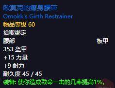 胸甲:不知道黑石深淵的競技場2暴擊的胸甲在這個版本有沒有,所以推薦TL學院的蒼白胸甲,蒼白胸甲是通靈學院6個BOSS的共有掉落,所以搞到手的機會還是比較大的。當然這件胸甲也是蒼白系列最好的東西,想湊套裝的就算瞭。