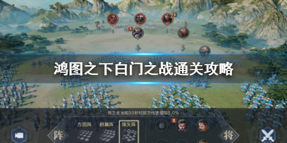 陣型:可選鋒矢陣(前期增傷)/方圓陣(平衡減傷,為扣減敵方總兵力提供時間)