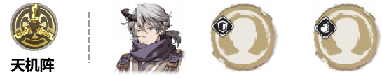 尉遲良自身為陣眼的天機陣是一個較易搭配激活的萬金油型戰陣,戰陣特效的自身周圍2格有友方角色,提升10%傷害的效果也比較容易觸發激活,尉遲良做主力的,可以考慮選擇以天機陣為主的戰陣搭配。