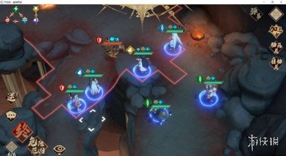 冰璃踩buff,普攻把左下角法師秒掉,再動走到如圖位置,用幽冥劍引把右下蠍子打殘血+斷腿