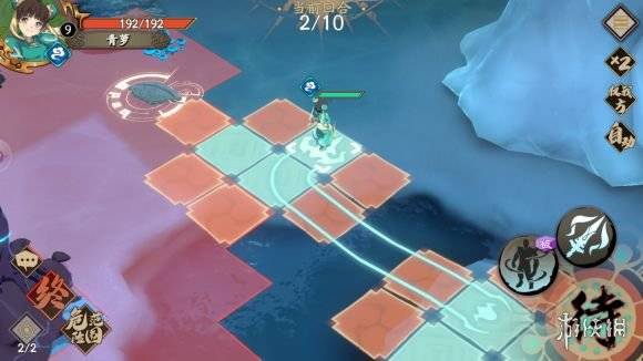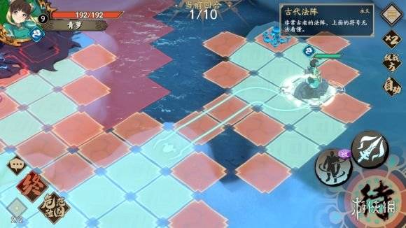 ①由於阿良走得比較慢,比青蘿慢了一回合,所以青蘿必須站角落待機一回合,現在著急去踩法陣的話,同樣會被下面的小怪攻擊。