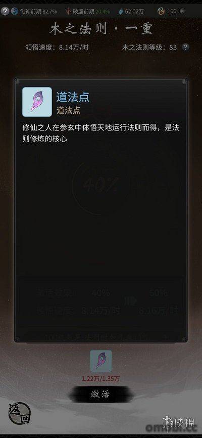 單一法則等級能影響到單一法則所提供的道法點每小時獲取總量。