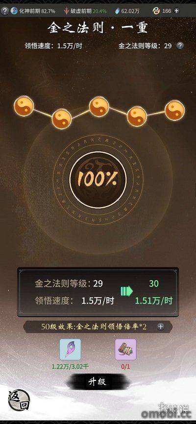 法則壓制可以理解為傷害提升百分比,而五行法則等級的提升需要單一法則等級達到升級下限后(每100級),才可以提升。
