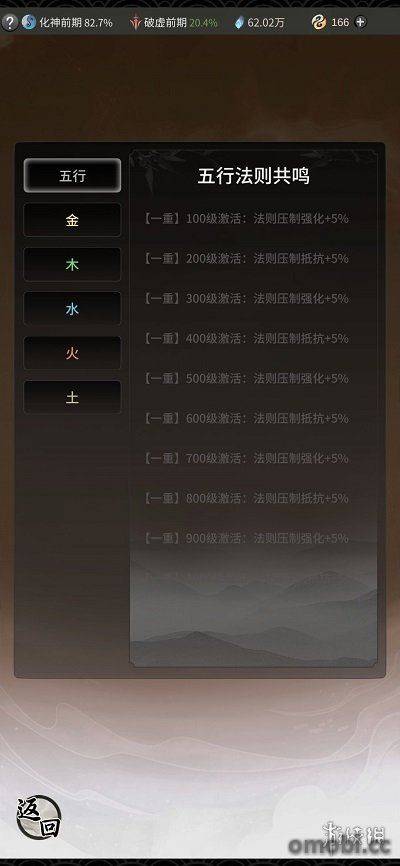 而五行法則等級則帶來的是攻擊強化方面的加成。