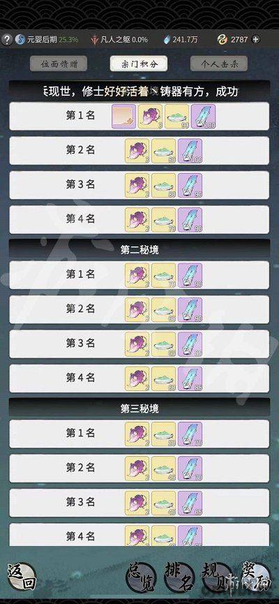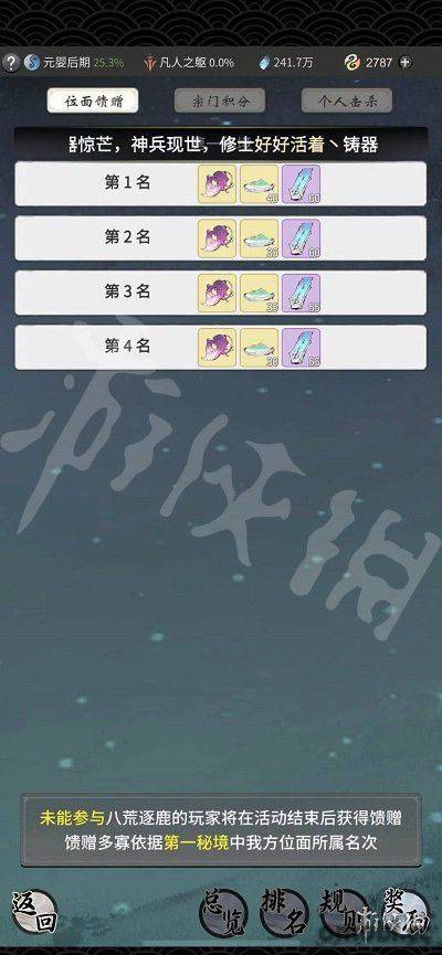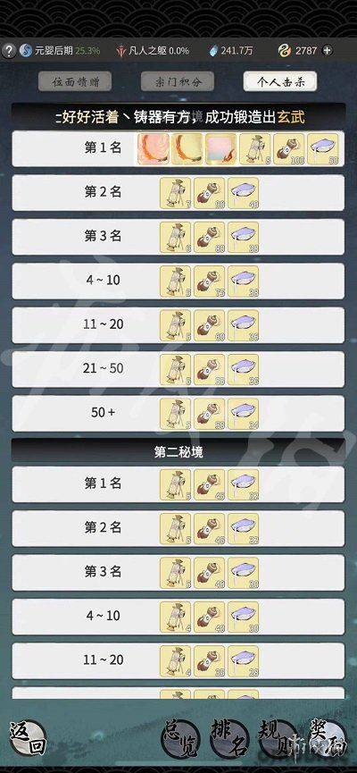 個人擊殺可以獲得功法要訣、乾坤玉簡、上品星塵獎勵。