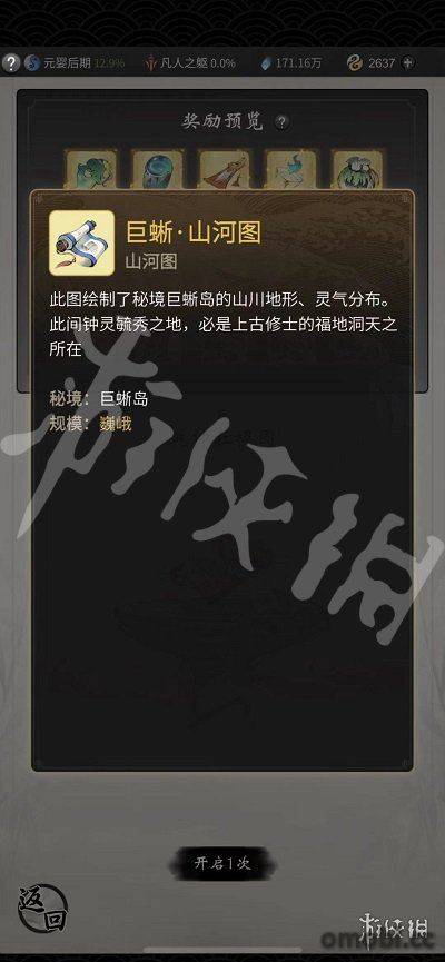 巨蜥·山河圖:該圖適用于巨蜥島秘境,其繪制了秘境巨蜥島的山川地形和靈氣分布。
