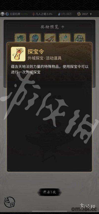 探寶令:蘊含天地法則力量的特殊商品,使用后可以進行一次外域探寶,開出率為3.2%。