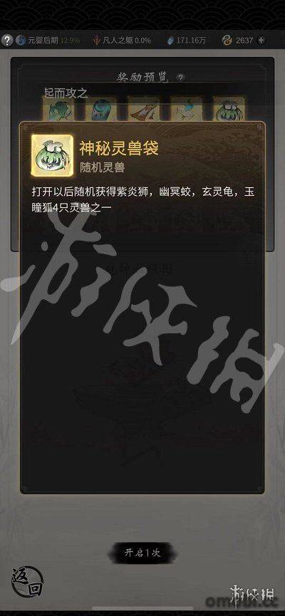 神秘靈獸袋:打開以后我們能夠獲得四大靈獸——紫炎獅、幽冥蛟、玄靈鬼、玉瞳狐中的其中一只,開出率為3.2%。