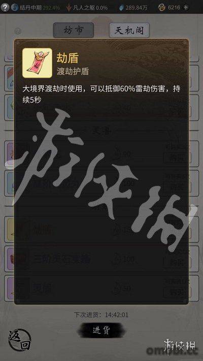 天機坊中優先購買渡劫時都需要用到的劫盾和靈盾。