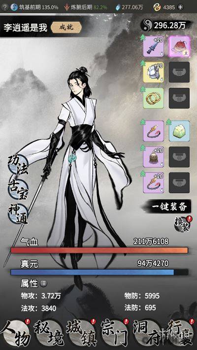 一念逍遙中角色可使用的裝備數量會隨著神識的提升而增加,最多可以裝備12件,其中武器、防具、飾品各一件,古寶3件以及6件法寶。