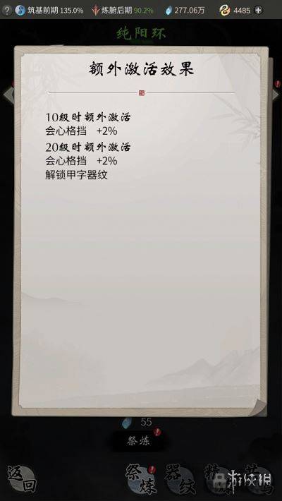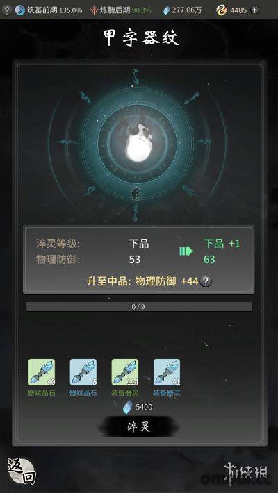 裝備強化至可激活器紋效果后,我們還可以通過花費材料來對裝備進行“淬靈”以提高器紋的品階和效果。