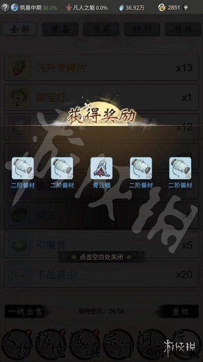 開啟儲物袋后可以隨機獲得法寶和妖獸材料。