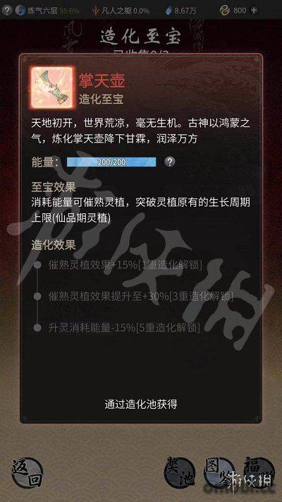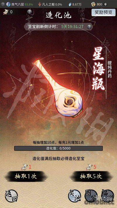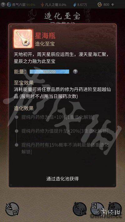 一段時間之后造化池的造化至寶就會刷新一次,需要在抽之后看看是不是想要的造化至寶。