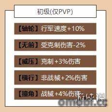 5選1,軸輪是比較基礎的行軍速度加成。威壓想要上去打克制,會比較考驗操作;無前會比較安逸,該技術也是初級技術中唯一一個有受傷減免效果的技術。