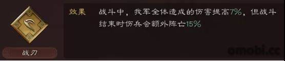 戰刃:這就是很直接的一個增傷,然后傷兵變少。比較適合爆發性輸出的隊伍,因為爆發更高,死得兵更少。