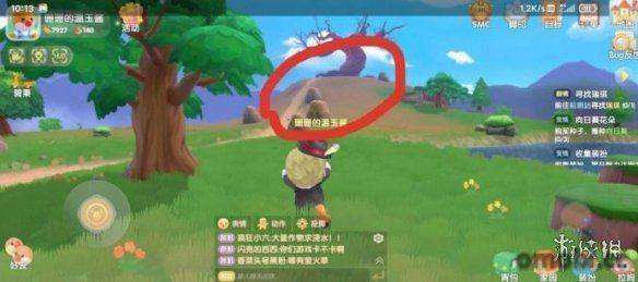 5、玩家走到橋邊停下,在右側的草叢里有一個光圈。