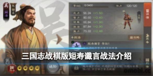 三國志戰棋版短壽讖言戰法介紹為A級傳承戰法,擁有強力的技能效果,小編特地為大家帶來了該戰法的效果屬性圖,感興趣的小伙伴們就快來和小編一起看看這篇三國志戰棋版短壽讖言戰法介紹吧。