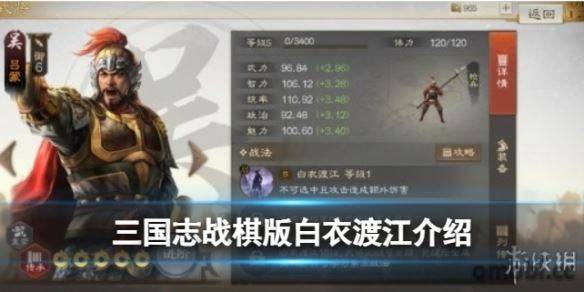 好了,以上就是小編為大家帶來的三國志戰棋版白衣渡江戰法介紹,有沒有解決小伙伴們的問題呢,看三國志戰棋版資訊,請關注游俠手游網。