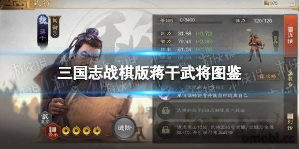 蔣干是三國志戰棋版中的金色魏國四星武將,自帶強力戰法妖術,擁有強力效果。那么接下來就讓我們一起了解蔣干的屬性和戰法是什么樣的,適合什么陣容搭配吧。