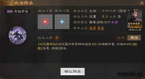 [對位置釋放]對范圍內敵軍群體造成120.0%謀略傷害。并施加40%[斷糧]效果,持續2回合。