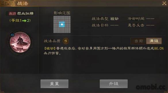 [被動]普通攻擊后,會對自身周圍方形一格內的故軍群體額外造成860%兵刃傷害。