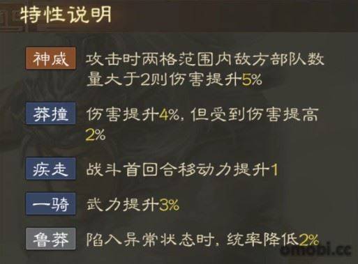 魯莽:陷入異常狀態時,統率降低2%