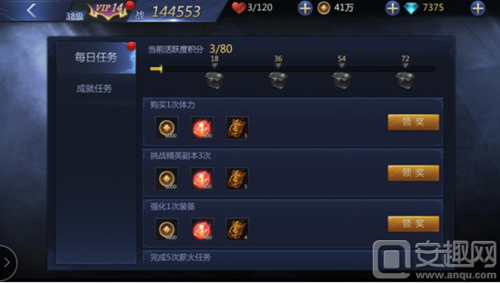 每日任務都是日常玩法中涉及到的,比如:挑戰普通副本、精英副本、競技玩法等,不用擔心任務太難而無法完成,做完任務後記得進入任務界面領取獎勵喲~~