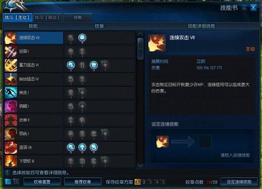 1)精神紋章。在單練的時候,連續攻擊是主要的回藍手段。點出精神紋章後可以提升15%的連續攻擊MP獲取,還算不錯。